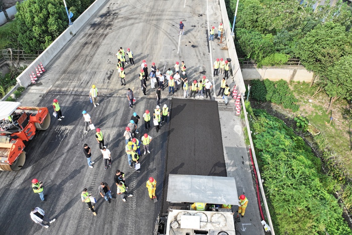 作为本次活动的核心环节,全体人员实地观摩了由九游官方端网页版登录入口进行施工的预防性养护技术现场,直观了解实际应用效果。在长纤维功能化复合封层技术区域,技术人员讲解了该技术如何通过一层找平,两层抗裂,三层防水为道路建立完善的表面功能。在MOH抗滑超薄磨耗层技术现场,参观人员对其抗水损、耐磨耗和抗滑性能进行详细了解。针对车辙、沉陷、龟裂等病害,改性铺装技术展示了如何将沥青混凝土旧路面在常温条件下改性成复合有机水硬性材料路面。以材料关键技术为根本,以成套专用装备为依托,以当代工程技术为手段,该工艺具有抗变形、防水损、耐老化、长寿命等多重技术优势。